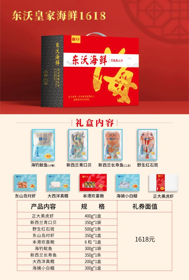 東沃海鮮盛宴禮盒魚、參、鮑、蝦滿滿一盒,將所有極具新年氛圍感、品質(zhì)高級(jí)感的海鮮,將所有對(duì)團(tuán)圓的期盼、對(duì)新年的祝福都融入其中。