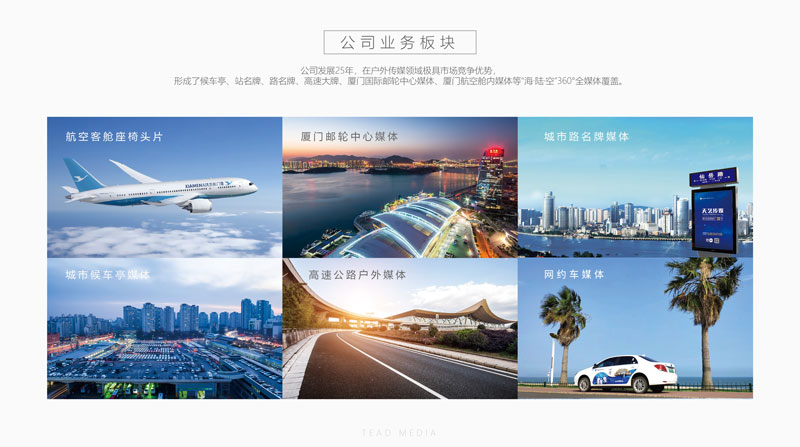 如今的天藝傳媒已經(jīng)成為廈門廣告媒體行業(yè)的龍頭企業(yè),秉著合作共贏,品效合一的理念,依托本土經(jīng)濟發(fā)展的優(yōu)勢以及深厚的客戶合作資源平臺,逐步構(gòu)建起豐富強勢的“海、陸、空360°”全媒體生態(tài)圈。同時,業(yè)務(wù)范圍覆蓋品牌管理、創(chuàng)意策劃、整合營銷、媒體投放等傳播鏈條。在占據(jù)戶外全媒體資源優(yōu)勢的同時,積極打造品牌運營、整合營銷一體化的團隊,為客戶提供“一站式”的全案服務(wù)體系,全面升級產(chǎn)業(yè)鏈,構(gòu)建多元化全媒體矩陣,達到最大回報的媒體投放組合效果。2015年10月天藝傳媒成功登陸新三板,成為福建省戶外傳媒類先行上市企業(yè)。目前天藝傳媒股份有限公司旗下?lián)碛?a href="http://m.wz05.com/business/youlun/">廈門國際郵輪中心媒體、招銀疏港高速公路媒體、廈門市島內(nèi)外的路名牌、站名牌和公交候車亭、廈門機場(手推車媒體)、廈門航空(客艙媒體)、廈門地鐵媒體等面向全廈門市、輻射全福建省乃至全國的高端媒介資源。