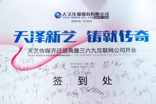 [2016年8月6日,悅享中心]天藝傳媒誠(chéng)邀各方合作伙伴及各大媒體,共同慶祝喬遷之喜暨三六九網(wǎng)絡(luò)公司開業(yè)儀式。
