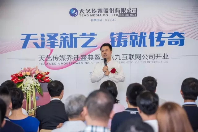 “今天是2016年8月6日,星期六,是喬遷和開業(yè)的黃道吉日,我們天藝傳媒公司選擇今天喬遷,三六九網(wǎng)絡(luò)公司選擇今天正式開業(yè),是天時(shí)。選擇悅享中心這塊風(fēng)水寶地是地利,特別是我們今天邀請(qǐng)來(lái)了這么多咱們天藝的新老朋友,是人和”,天藝傳媒董事長(zhǎng)林少敏如先生是說(shuō)。