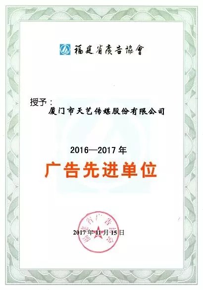 天藝榮獲廣告先進(jìn)單位